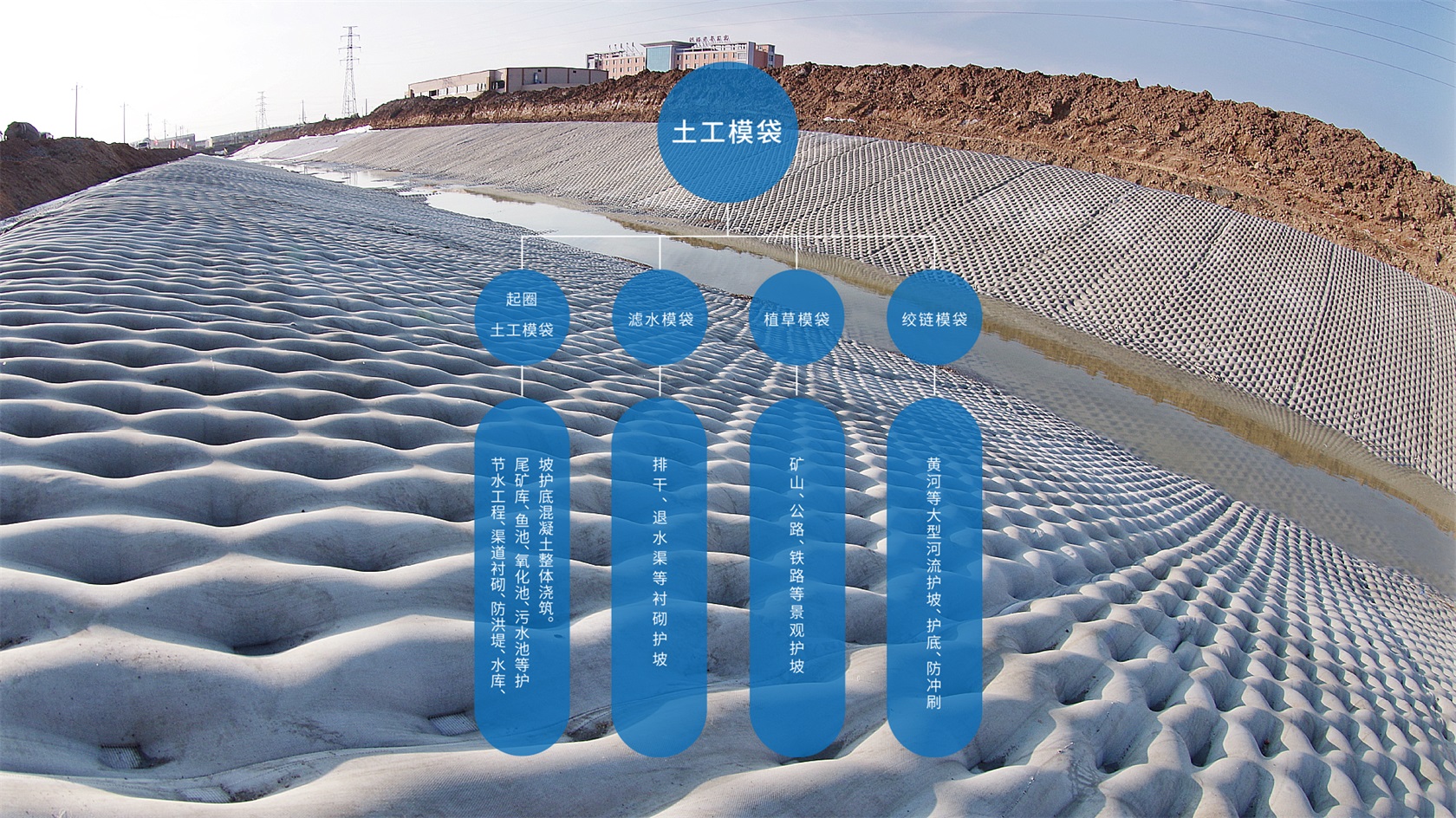 力港模袋是全國唯一一家集拉絲、加捻、整經、紡織、產品研發為一體的土工模袋生產企業,占地面積34000平米,擁有20000平米標準化廠房,員工200人。土工模袋年生產800萬平米,土工膜、無紡布年生產600萬平米。水渠節水襯砌工程累計施工5000公里,完成水庫、魚池、沉淀池、氧化池等項目600個,是中國規模最大的高強機織土工模袋生產廠商,土工模袋銷量全國領先。